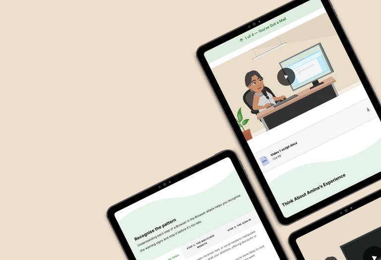 Behaviour change training for non-technical staff, built with custom HTML, CSS, and JavaScript inside Articulate Rise.